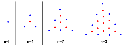 A centred triangular number is a centred figurate number that represents a triangle with a dot in the centre and all other dots surrounding the centre in successive triangular layers.