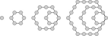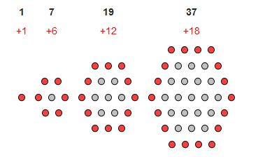 A centred hexagonal number, or hex number, is a centred figurate number that represents a hexagon with a dot in the centre and all other dots surrounding the centre dot in a hexagonal lattice.